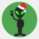 Un extraño gracioso con el gorra de Santa Claus parpadeando el signo de la paz. Graciosos camisetas de Navidades alienígenas, camisetas, botones y regalos de Navidades para la familia y amigos. ¡Regalos alienígenas humorísticos para los creyentes extraterrestres!