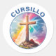 Pegatina Redonda Cursillo Wood Cross With Rainbow and Clouds