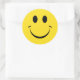 Pegatina Redonda Curso clásico de color amarillo con cara feliz