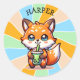 Pegatina Redonda Curte Kawaii Fox con té de burbuja personalizado