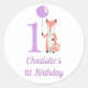 Pegatina Redonda Curte Whimsical Fox & Balloon Purple 1er cumpleaño