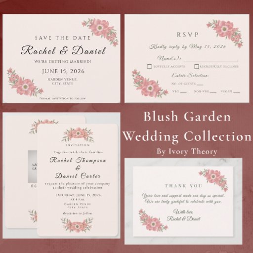 A matching invitation suite is available to complete your cohesive wedding look. Check our Blush Garden Wedding Collection.