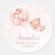 Moderno color de agua dulce Boho Teddy Bear Chica bebé Ducha Pegatina redondo clásico Personaliza este Pegatina Dreamy Adorable Teddy Bear con los detalles de su ducha de bebé de forma fácil y rápida, oprime el botón de personalizar para reorganizar más, y formatear el estilo y la ubicación del texto. Este diseño está hecho con todo el amor por el fondo del cielo blanco y rosado soñado y las estrellas doradas al lado del adorable osito de peluche con globos.