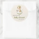 Estos adorables pegatinas de ducha de bebé tienen un dinosaurio beige y verde acuarela que nace de su huevo, por encima de las palabras "baby ducha" en letra de impresión de mano verde. Personalice el texto con el nombre de la futura madre y la fecha en sans serif de carbón gris.