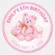 Pegatina Redonda Cute acuarela Rosa Teddy Oso y Flores Cumpleaños