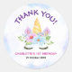 Este clásico pegatina de agradecimiento redondo se puede personalizar fácilmente agregando el nombre y la fecha de cumpleaños de su hijo. Visite la tienda Bubs n Giggles en https://www.zazzle.com/store/bubsngiggles para ver la colección completa.