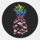 Pegatina Redonda Cute And Lovely Pink Flamingo Pineapple Love