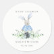 Pegatina Redonda Cute Aqua Blue Bunny Garden Foliage Baby Shower