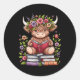 Pegatina Redonda Cute Baby Highland Cow con Bookworm de libro de le