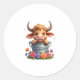 Pegatina Redonda Cute Baby Highland Cow With flowers Calf Animal co