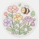 Pegatina Redonda Cute Bee & Smiling Flowers Sticker - Pastel Floral