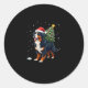 Pegatina Redonda Cute Bernese Mountain Dog in a Christmas Tree for