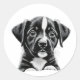 Pegatina Redonda Cute Black & White Puppy – Adorable Dog Sticker