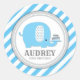 Pegatina Redonda Cute Blue Elephant Boy First Birday Baby Shower