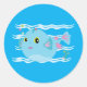 Pegatina Redonda Cute Blue Tropical Fish Pink Fins