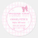 Pegatina Redonda Cute Bow Pastel Pink Gingham Baby Shower Gracias