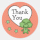 Pegatinas de puntos de polka de melocotón. Un gran corazón blanco de amor con las palabras gracias adentro. En la parte inferior derecha hay un lindo brócoli verde y feliz con tres estrellas verdes a su izquierda.