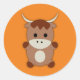 Pegatina Redonda Cute Brown Cow
