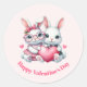 Pegatina Redonda Cute Bunnies Sharing a Heart Valentine's Day