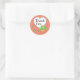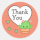 Pegatinas de puntos de polka de melocotón. Un gran corazón blanco de amor con las palabras gracias adentro. En la parte inferior derecha hay un lindo cactus verde feliz en una maceta de flores marrón con tres estrellas verdes a su izquierda.