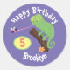 Pegatina Redonda Cute camaleón atrapando un cumpleaños de personali