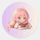 Pegatina Redonda Cute Cartoon Girl Writing on a Book .