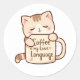 Pegatina Redonda Cute Cat Hug Coffee Love Language