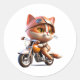 Pegatina Redonda CUTE CAT montando una camiseta clásica en motocicl