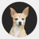 Pegatina Redonda Cute Chihuahua Dog Tan Mascota negro arte retrato