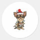 Pegatina Redonda Cute Chihuahua Santa Christmas Tree enciende Navid
