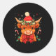 Pegatina Redonda Cute Christmas Highland Cow Mooey Xmas Heifer Sant