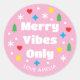 Get into the festive spirit with these cute personalized stickers! A playful design with snowflakes, hearts, stars and Christmas trees, all adding to the cheerful vibe. The template incorporates simple typography with the phrase “Merry Vibes Only”, and is customized with your name. A modern, retro style that's perfect for kids, teens, friends and family. Custom stickers add a personal touch to gift wrap, envelopes, party favors, or embellishments for holidays, birthdays, and other special occasions. Printed colors: pink, red, green, blue, yellow and white — or change the colors with the design tool. Available with a matte or glossy finish.