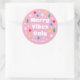 Pegatina Redonda Cute Custom Name Holiday Retro Pink Christmas