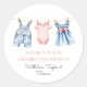 Añade un toque final dulce a tus favores con este pegatina de Gracias! Con un bonito tendedero acuático con ropa de bebé en tonos suaves de azul denim y rosa, es la combinación perfecta para tu ducha de bebé de jean azul. Ideal para sellar bolsos de favor, sobres o regalos fiestas.