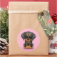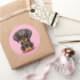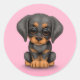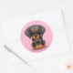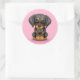 Pegatina Redonda Cute Doberman Pinscher cachorro perro en rosa