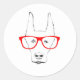 Pegatina Redonda Cute Doberman Pinscher Dog Face w Spectacle Sketch