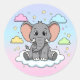 Pegatina Redonda Cute Elephant on Cloud - I'm Ele-Fun-t Pun