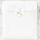 Pegatina Redonda Cute, es un chica de cigüeña morada que sostiene a