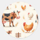 Pegatina Redonda Cute Farm Animals Barn Pattern