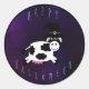 Pegatina Redonda Cute feliz vaca de Halloween con Gorra de brujas