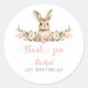 Cute rosa floral, un chica de conejito de primer cumpleaños gracias pegatina redondo clásico.