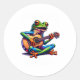 Pegatina Redonda Cute Frog Playing A Guitar Dont Worry Be Hoppy _1
