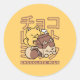 Pegatina Redonda Cute gato montando leche de chocolate Carton Kawai