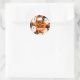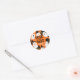 Este pegatina de Halloween es perfecto para una decoración fiesta y para envolver regalos, gracias a los fantasmas adorables de fondo naranja. (Obra de arte generada por IA)
