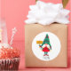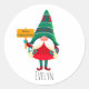Pegatina Redonda Cute Gnome Holding Placard con saludos