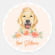 Pegatina Redonda Cute Golden Retriever y Peach Flowday