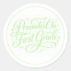 Pegatina Redonda Cute Green “Promoted to First Grade” Design