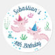 Pegatina Redonda Cute Happy Axolotl White Birday Party