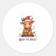 Pegatina Redonda Cute Highland Baby Cow Christmas Lights Merry & Br