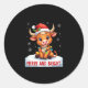 Pegatina Redonda Cute Highland Baby Cow Christmas Lights Merry & Br